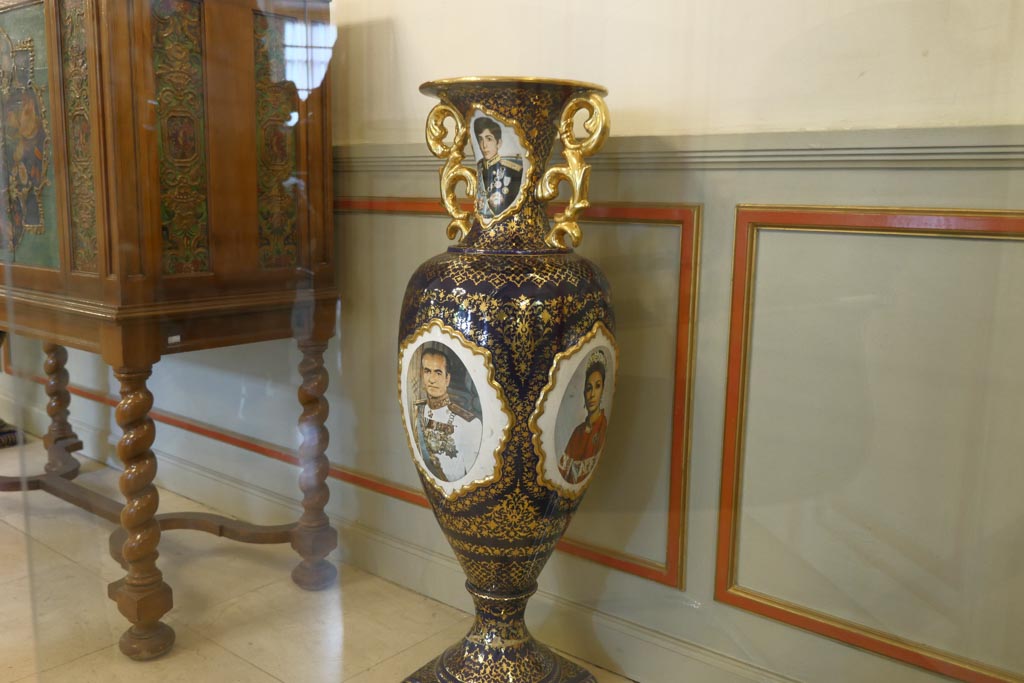 Un vase à l’entrée, témoin du culte que vouait le Shah à son image et celle de sa famille, mais aussi symbole du « Prince héritier ». La vie d’un jeune garçon qui joue au football. L’Iran est toujours aujourd’hui une des grandes nations footbalistiques, j’en ai été le témoin lors de ce séjour.